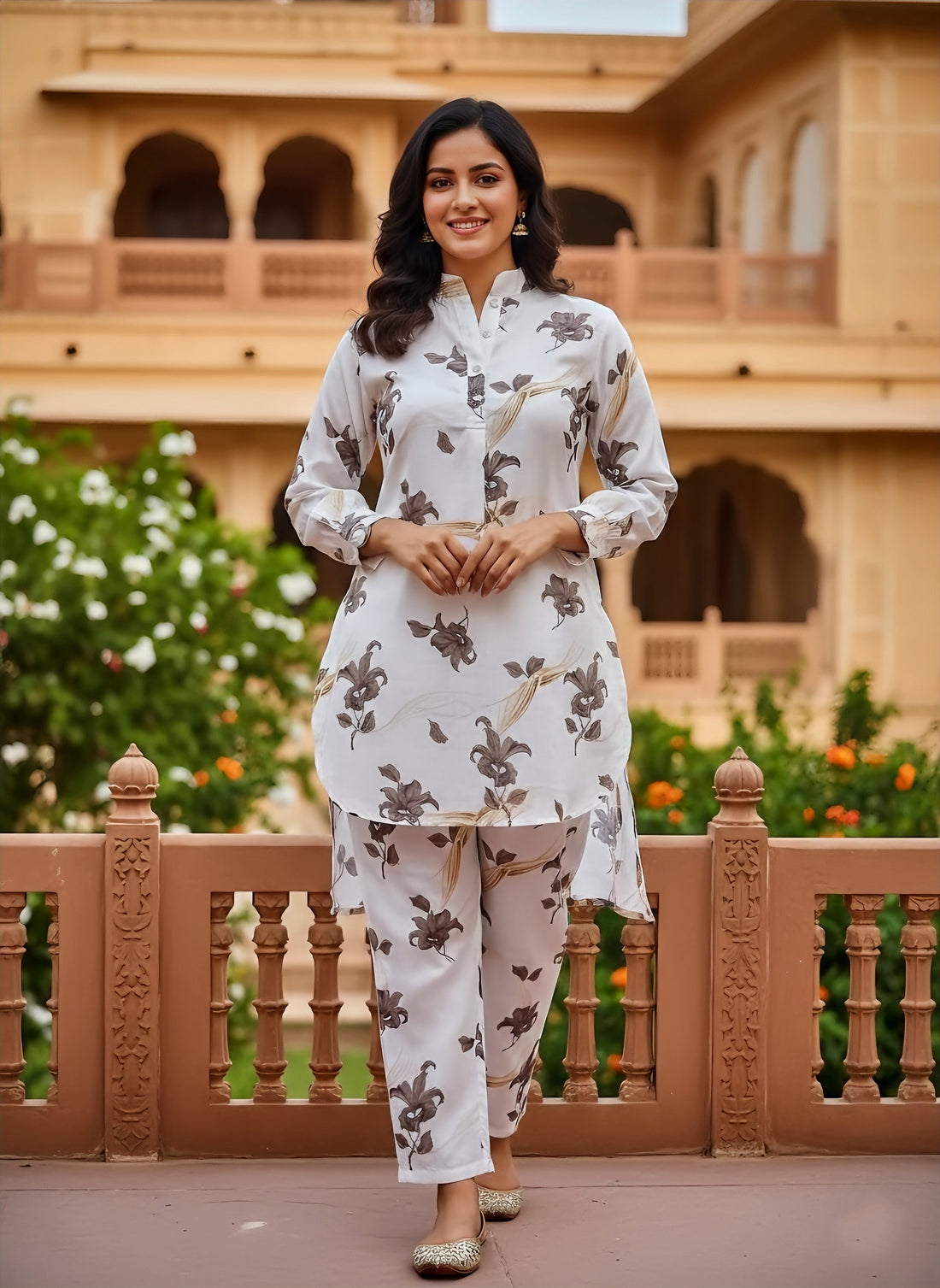Elevate your everyday style with this elegant ivory floral cord set — a perfect balance...