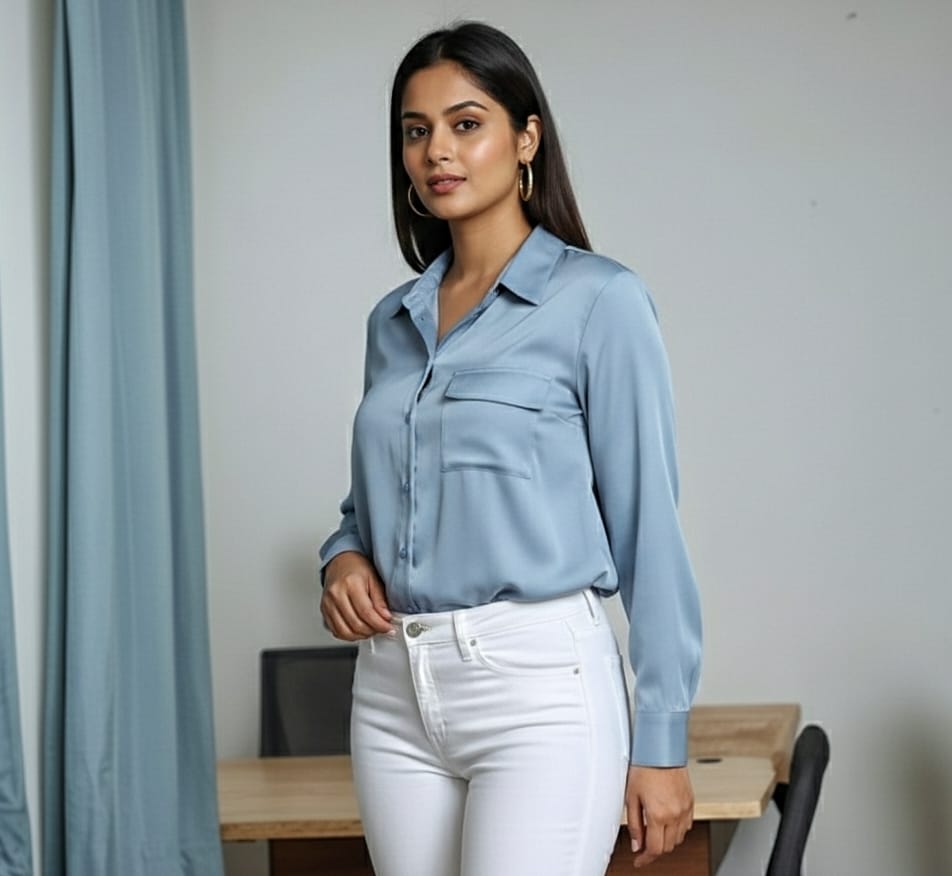 Add a touch of elegance to your wardrobe with this Sky Blue Crop Cotton tencell...