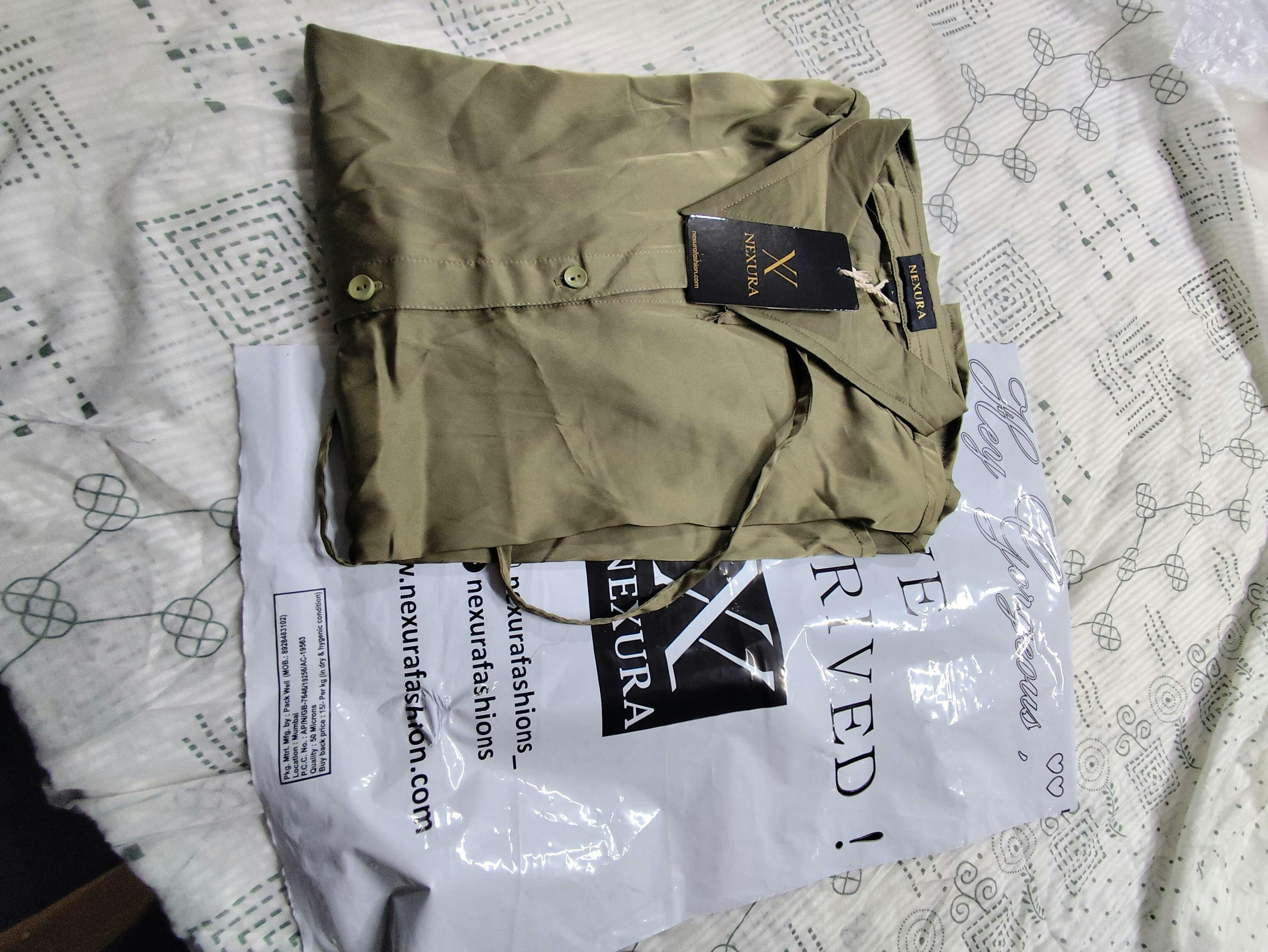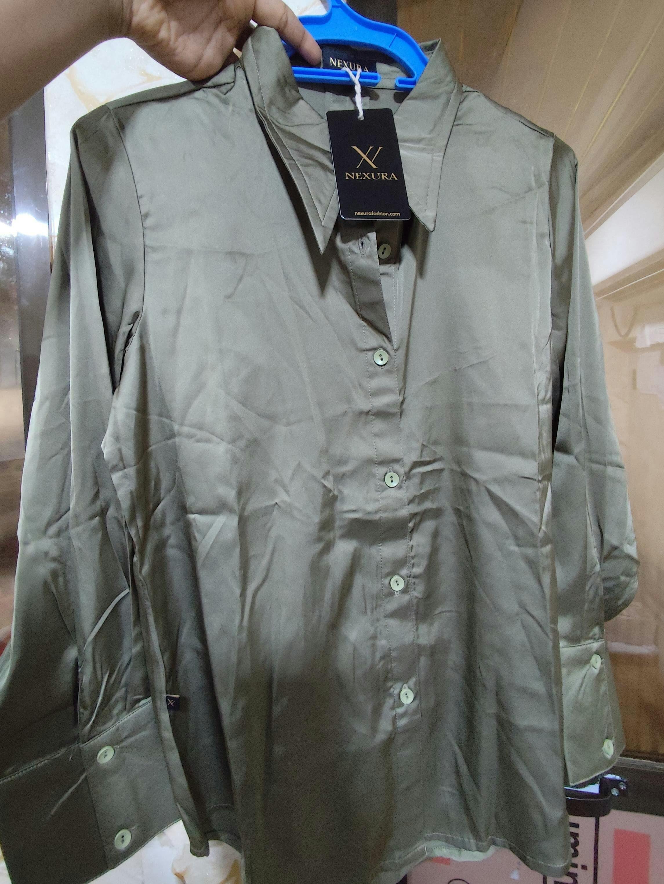 Design: Classic shirt collar, full sleeves with buttoned cuffs, and front button closure