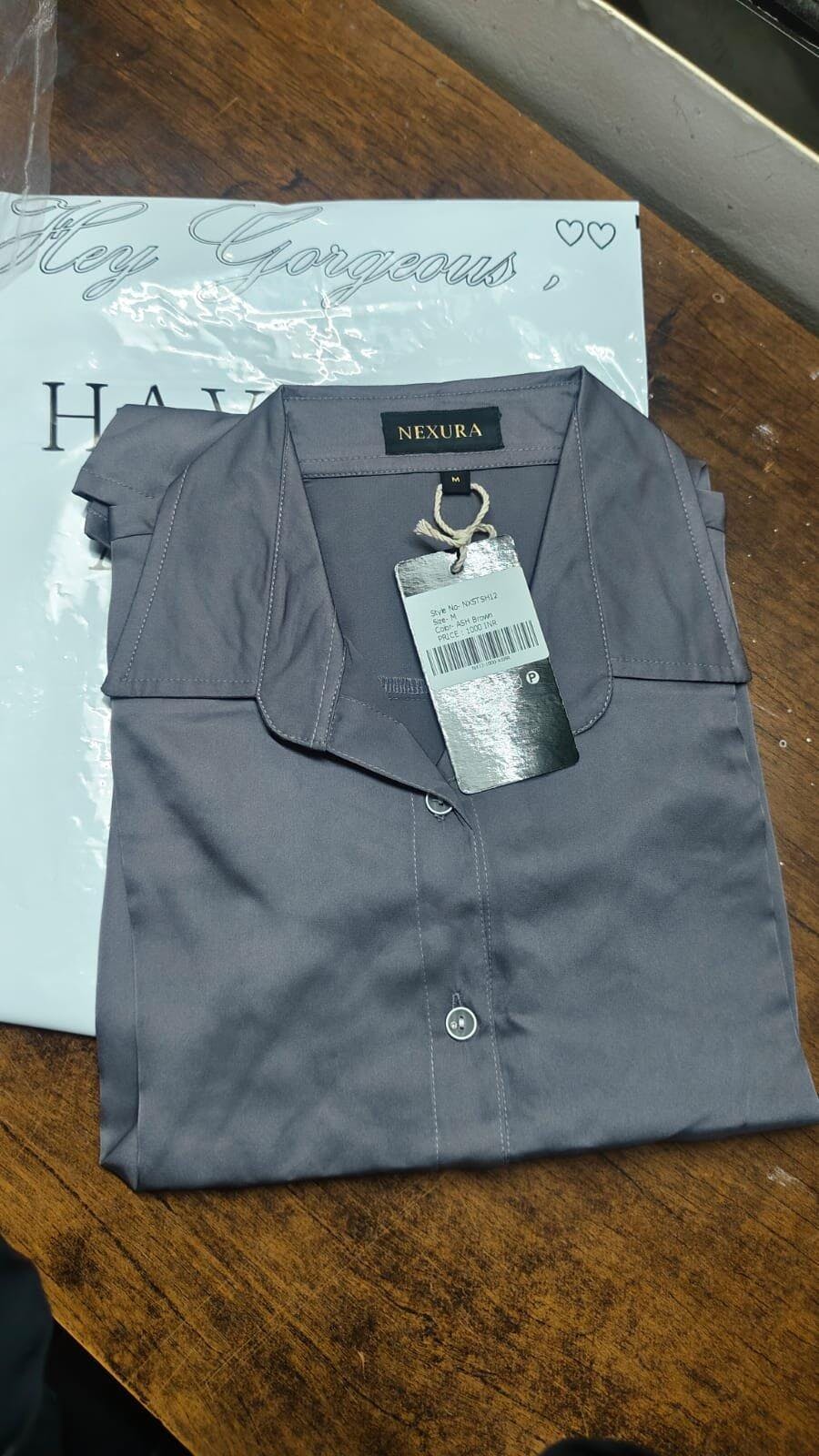 Design: Classic shirt collar, full sleeves with buttoned cuffs, and front button closure