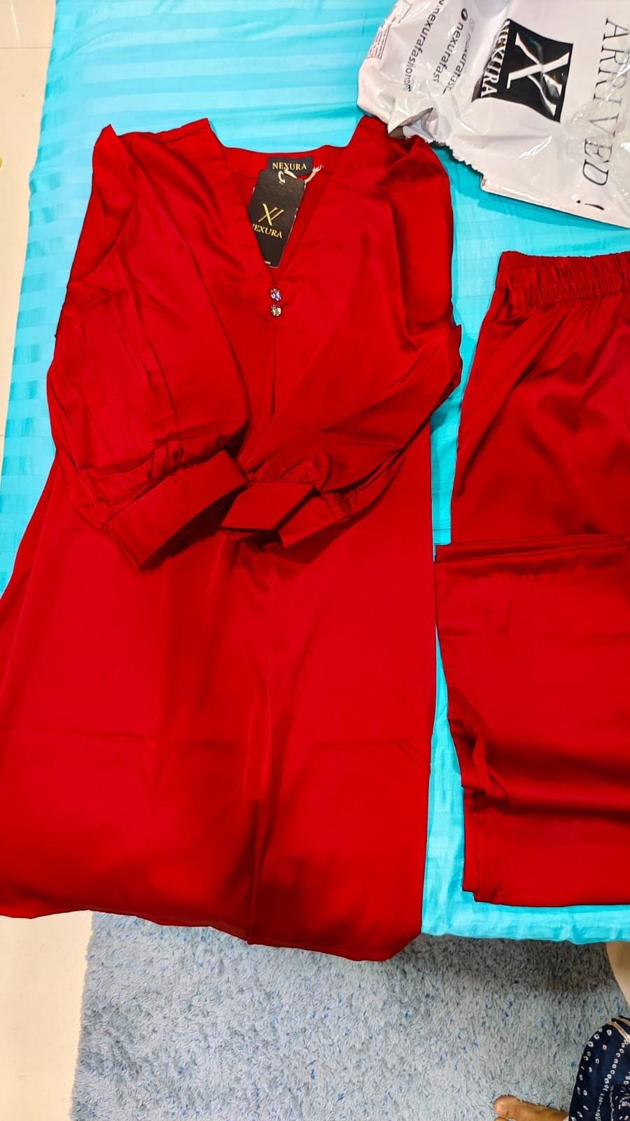 Step into effortless elegance with this luxurious maroon satin co-ord set for women. Featuring a soft, flowy kurti top with stylish puff sleeves and pearl button detailing, paired with matching relaxed-fit pants – this set is perfect for casual outings, festive gatherings, or even elegant loungewear.